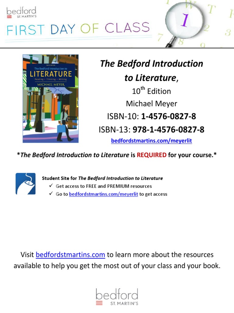 Bedford Introduction To Literature: Bedford introduction to literature helps you improve your writing through a strong focus on support and practice.